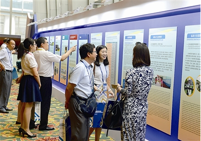 (参加青岛国际标准化论坛的嘉宾参观我市标准化成果展)