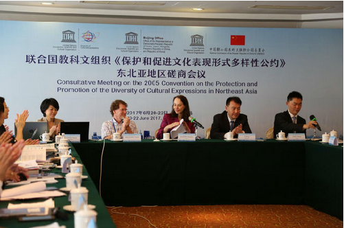 联合国教科文组织驻华代表处、联合国教科文组织《2005公约》秘书处及中国联合国教科文组织全国委员会于2017年6月20至22日在中国青岛联合举办了“联合国教科文组织《保护和促进文化表现形式多样性公约》东北亚地区磋商会议”。本次会议的目的是为政府间交流、区域间合作、经验共享,展示创意政策和《2005公约》优秀实践提供一个平台。