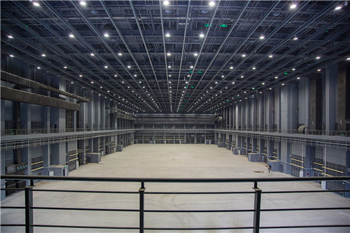 此次竣工的15个摄影棚中最耀眼的明星——一万平米摄影棚位于影视产业园制作区东北部。这座全球最大的摄影棚长168米,宽69.9米,高27.5米,相当于九层楼高、两个普通足球场的面积。