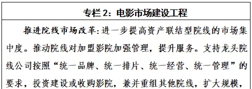 (一)做优做强院线和影院。坚持电影市场化改革方向,为符合条件、规范经营市场主体提供公平竞争机会。根据市场需求,不断深化院线制改革,培育一批具有品牌影响力的城市院线、点播院线和特色院线。鼓励电影院线和发行企业并购重组。拓宽融资渠道,吸引社会资本投资电影产业。加快影院发展,建设覆盖全面、分布合理、设施先进、惠及城乡的电影放映格局。开拓繁荣农村电影市场,主动与新时代文明实践中心建设统筹衔接,加快推进乡镇影院建设。鼓励发展校园、社区等特色院线,面向特定观众群体发挥积极作用。支持人民院线和艺术院线在山东发展。