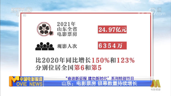 近日,CCTV6《中国电影报道》“奋进新征程,建功新时代”系列特别节目聚焦山东电影,纵览山东电影制作发行、影视基地建设、农村电影放映等方面取得的进展。