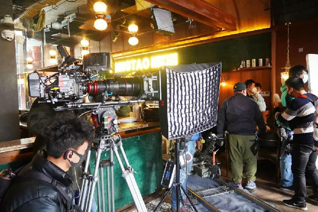 近日,在青岛东方影都星光岛酒吧街上,优酷定制剧《走起!我的天才街坊》剧组正在这里取景拍摄。受新冠肺炎疫情影响,这条酒吧街还没有正式复工营业,剧组的拍摄场景就设在其中一间酒吧里。